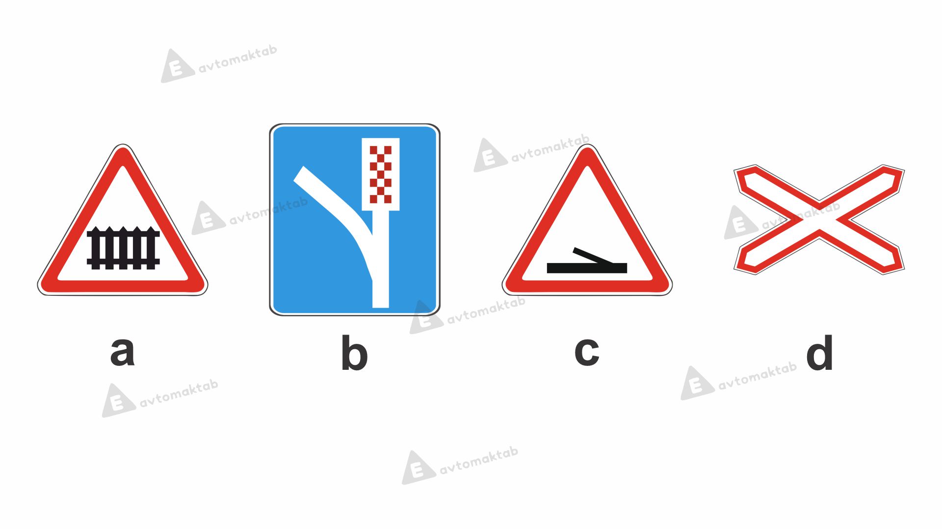 Qaysi belgi temir yo‘l kesishmasini to‘suvchi moslama bilan jihozlanganligi haqida ogohlantiradi?