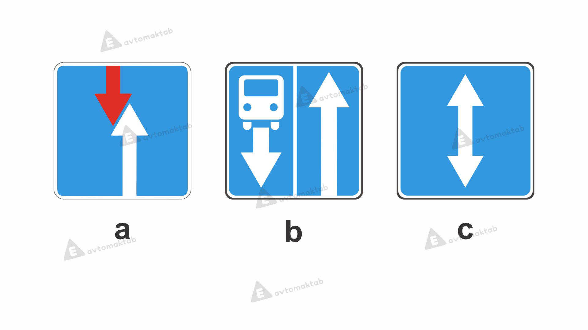 Ushbu belgilardan qaysi biri bir yoki bir necha bo‘laklarda harakatlanish yo‘nalishi qarama-qarshi tomonga o‘zgarishi mumkin bo‘lgan yo‘l qismining boshlanishini bildiradi?