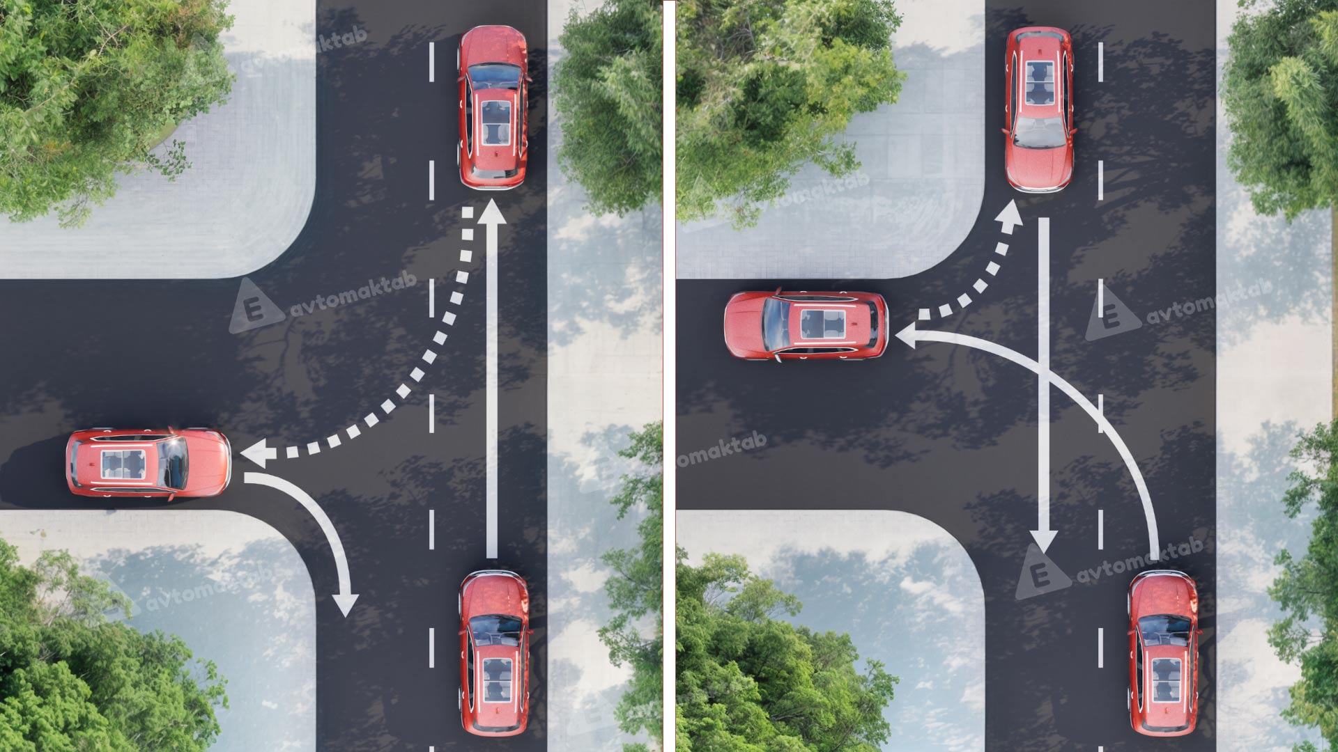 Chap tomondagi yondosh hududdan foydalanib qayrilib olishning ko‘rsatilgan qaysi usuli harakat xavfsizligini ta’minlaydi?